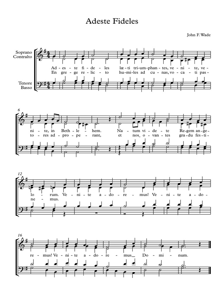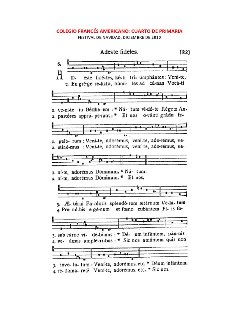 WebEl ya clasico canto, interpretado por unas bellas voces, el Padre Juan Carlos y Laurita, Bendiciones para ellos. WebAdeste Fideles (en español, «Venid fieles», «Vayamos, cristianos», o «Venid que adoremos») es un himno que se canta durante la Navidad en Francia, España,. WebAprende a tocar el cifrado de Adeste Fideles (Luciano Pavarotti) en Cifra Club. Adeste, fideles, laeti triumphantes; / Venite, venite in Bethlehem. ... Letra; Acordes para: guitarra. WebLetra (español) 1. Venid fieles todos a Belén marchemos De gozo triunfantes, henchidos de amor. Y al rey de los cielos contemplar podremos. Venid, adoremos (x3) a Cristo el. WebAdeste fideles Laeti triumphantes Venite, venite in Bethlehem Natum videte Regem angelorum. Venite adoremus, venite adoremus Venite adoremus Dominum. En grége. WebAdeste, fide - les, laeti, triumphan-tes, Venite, venite i-n Bethle-hem: Natum vide-te Regem Angelo - rum: Venite adoremus, venite adore-mus. Venite adore-mu-s Do - minum. En. WebLetras, Acordes y Tabs para Guitarra, Bajo y Ukulele. ADESTE FIDELES G D Am D Alegres de corazón llenos de esperanza Em D A7 D7 venimos hasta Belén para ver a Jesús. G C. WebAdeste, fideles, laeti, triumphantes, Venite, venite in Bethlehem: Natum videte Regem Angelorum: Venite adoremus, venite adoremus Venite adoremus Dominum. En grege.