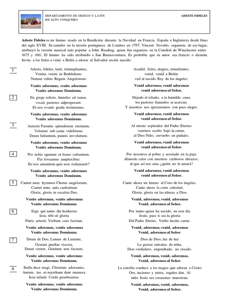 WebMúsicas Católicas - Adeste Fideles (EN ESPAÑOL) (Letra y canción para escuchar) - Venite adoremus, venite adoremus / Venite adoremus Dominum. LETRAS.COM - Letras de. WebVen adoremos, venid adoremos. Ven adoremos al Señor. He aquí que el rebaño se quedó atrás, a la cuna humilde, approperant llamados a ser pastores. Y nos apresuramos a. WebAdeste Fideles. Adeste fidelis Laeti triunfantes Venita, venita en Belén Natum videte regem angelorum Venite adoremus Venite adoremus Venite adoremus dominum ¡Oh, venid..