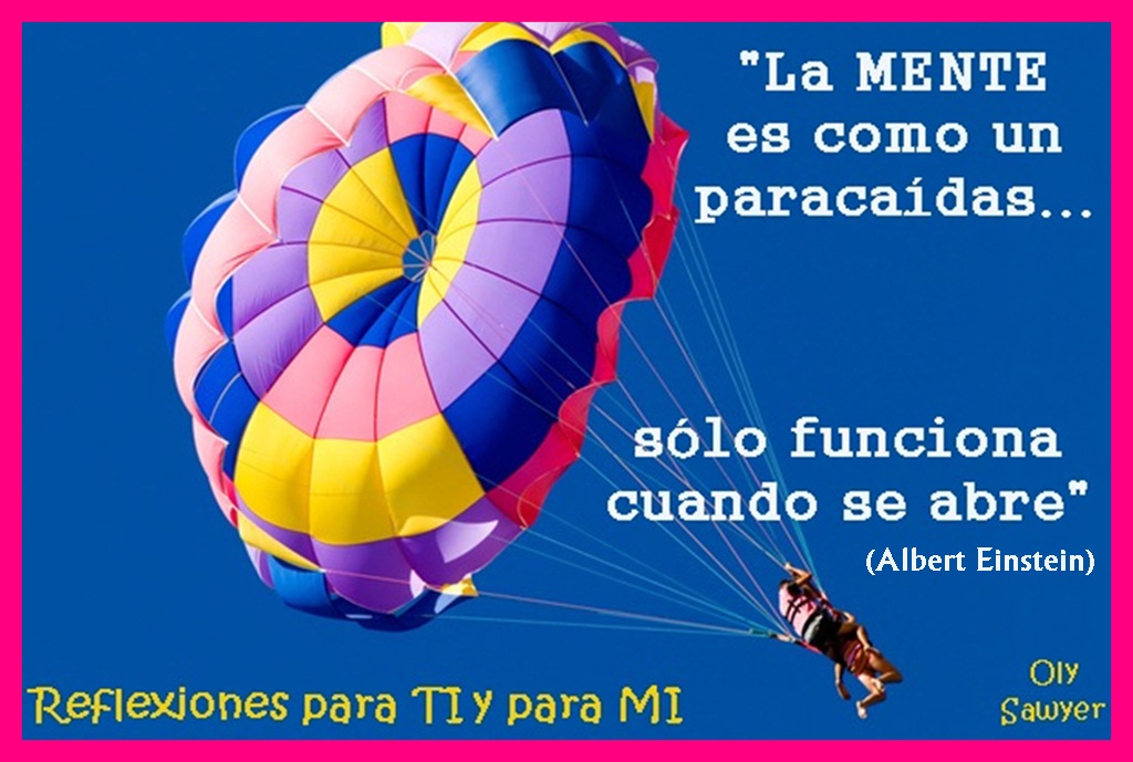 La Mente Es Como Un Paracaidas. WebLa mente es como un paracaídas: solo funciona si se abre. 4 minutos. Abrir nuestra mente es fundamental para saber aprovechar las oportunidades que se nos presentan y que, si no salimos de nuestra zona de confort, podríamos desaprovechar.. WebA continuación las frases sobre paracaídas. 1. “Las mentes son como paracaídas, solo funcionan cuando están abiertas”. James Dewar. 2. “¿Quieres volar? no esperes a otros,. .