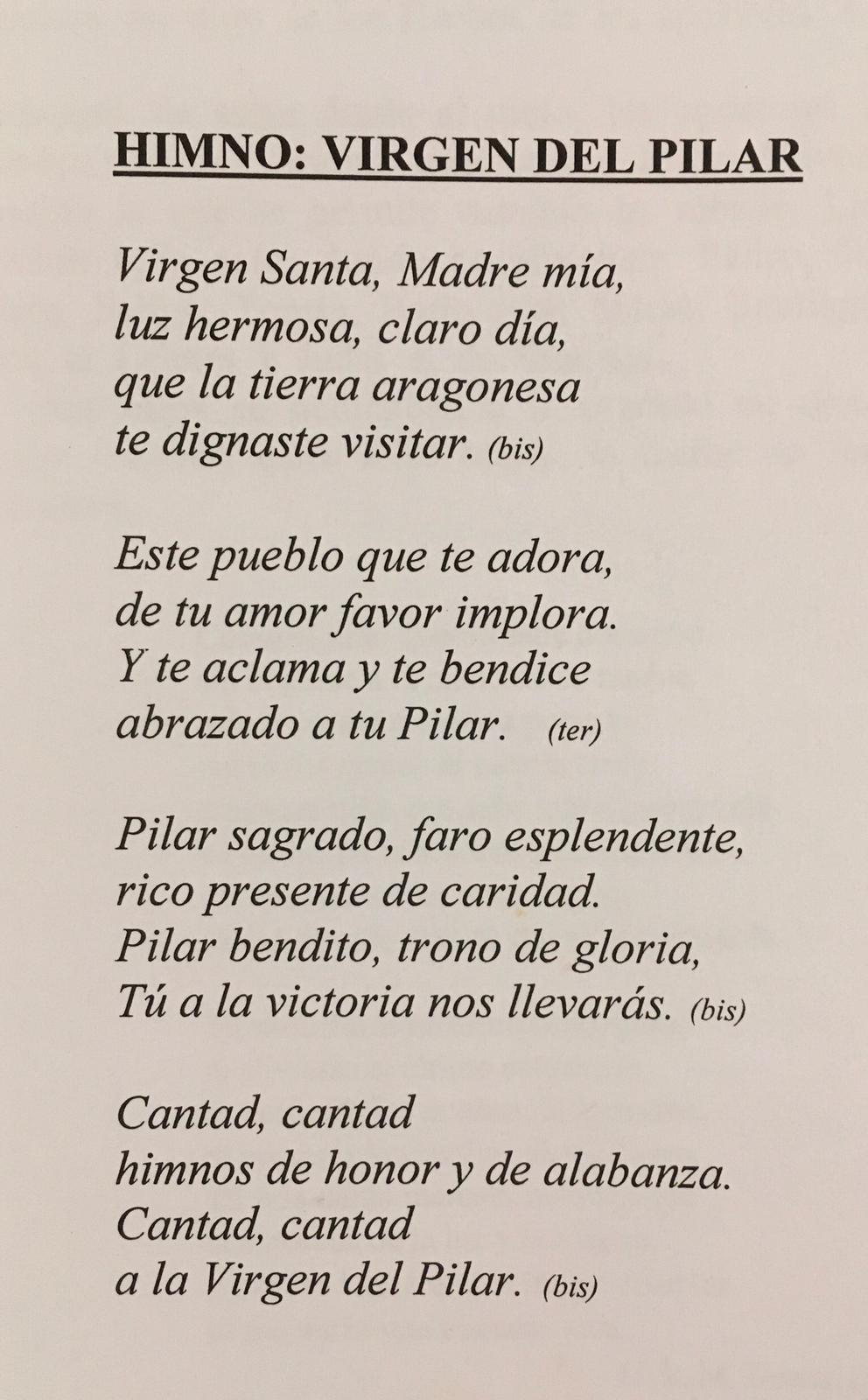 WebAndrés Amorós celebra el Día de la Hispanidad a ritmo de jotas con piezas como La Virgen del Pilar dice o Quien al oír un viva España. Menú ... Copia el código. WebPilar sagrado, faro esplendente, rico presente de caridad. Pilar bendito, trono de gloria, tú a la victoria nos llevarás. Tú a la victoria nos llevarás. Cantad, cantad. himnos de honor y. WebEste pueblo que te adora, de tu amor favor implora, y te aclama y te bendice abrazado a tu Pilar. Si vols tenir un bon favar, sembra’l per la Mare de Déu del Pilar. Pel Pilar, faves a. WebLa historia recoge que tras ser terminada la Basílica del Pilar de Zaragoza en 1872, todos los días 2 de enero y 12 de octubre se llenaba de flores el camarín de la. Webla Virgen del Pilar dice que no quiere ser francesa, que quiere ser Capitana de la tropa aragonesa de la tropa aragonesa la Virgen del Pilar dice. Un orgullo singular tienen los. Webabrazado a tu Pilar. Pilar sagrado, faro esplendente, rico presente de caridad. Pilar bendito, trono de gloria, tú a la victoria nos llevarás. Cantad, cantad. himnos de honor y de.