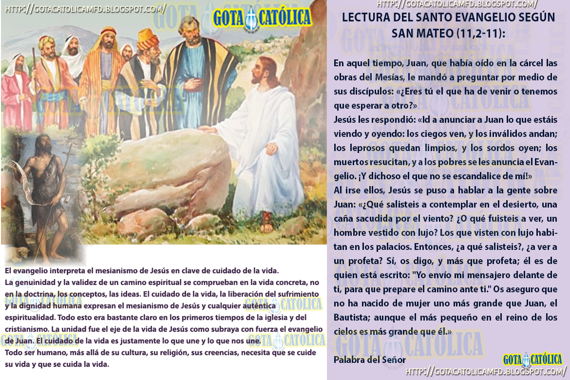 Lecturas Domingo 4 De Diciembre 2022. WebLectura del santo evangelio según san Mateo (3,1-12): Por aquel tiempo, Juan Bautista se presentó en el desierto de Judea, predicando: «Convertíos, porque está. Web4 dic. 2022, II Domingo de Adviento. Evangelio según san Mateo 3, 1-12: Convertíos, porque está cerca el reino de los cielos. Evangelio y lecturas del domingo. dominicos.org. .