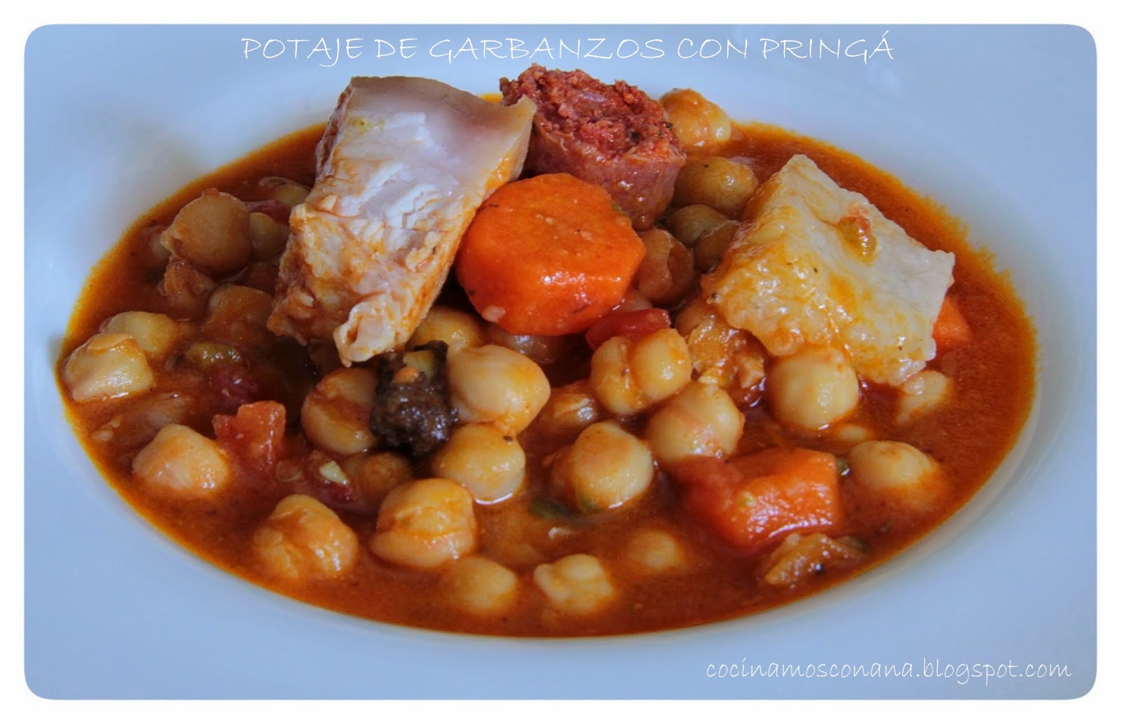 Hoy me apetece cocinar: POTAJE DE GARBANZOS CON PRINGÁ.