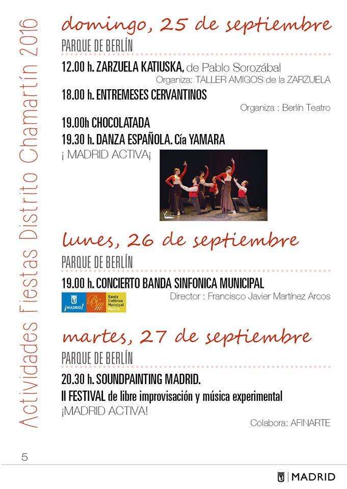 WebLas fiestas de Chamartín en honor a San Miguel vuelven, tras dos años de ausencia por la pandemia, con toda su intensidad y una programación para todos los. Web22/09/2022. Las fiestas de Chamartín en honor a San Miguel vuelven, tras dos años de ausencia por la pandemia, con toda su intensidad y una programación para. WebFelices Fiestas, chamartineros. DISTRITO CHAMARTÍN 23 SEPT. - 02 0CT. 2022 PARQUE DE BERLÍN Sonia Cea Quintana Concejala del Distrito de Chamartín Parque. WebEventos culturales - Distritos - Chamartín. Del 5 octubre de 2022 al 26 abril de 2023 Biblioteca Pública Municipal José Hierro (San Blas-Canillejas) WebProgramación, coordinación y ejecución de las Fiestas de San Miguel del Distrito de Chamartín. ENTIDADES LOCALES>Comunidad de... Programación, coordinación y.