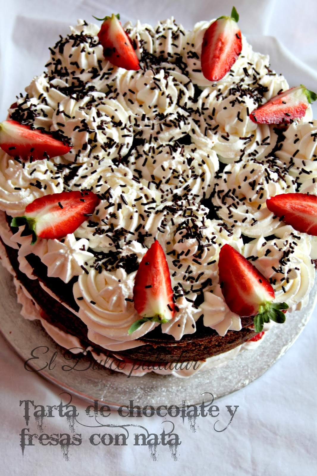 Tarta De Fresas Con Nata Y Chocolate.