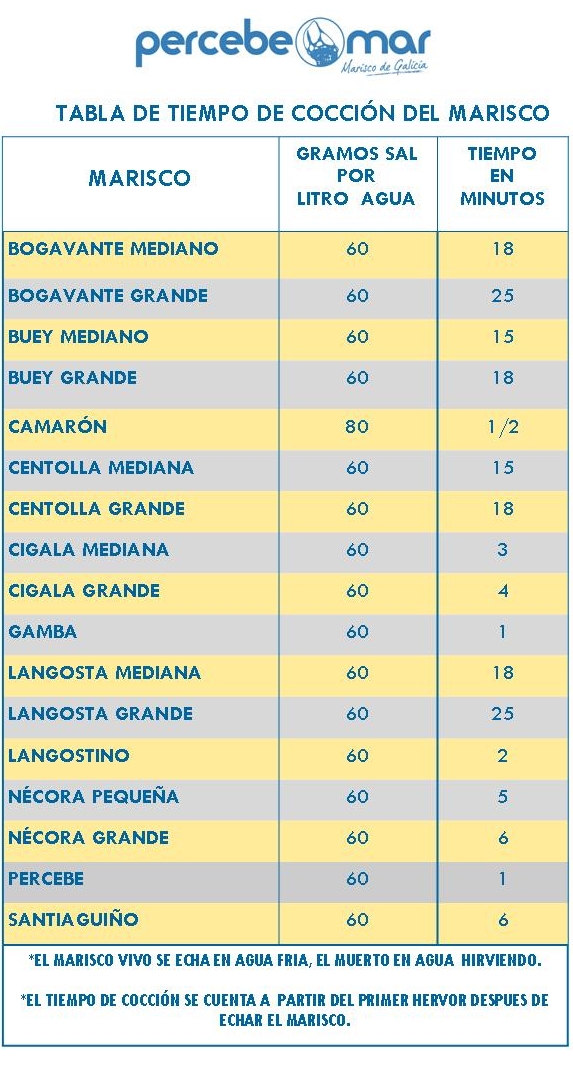 Tabla de tiempos y consejos para cocer el marisco correctamente